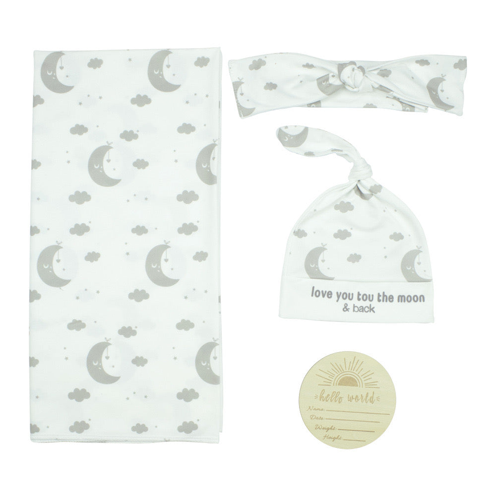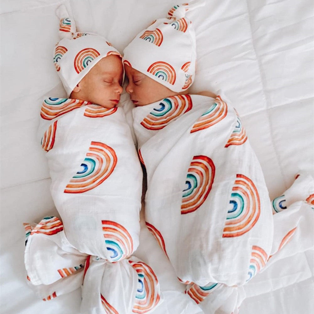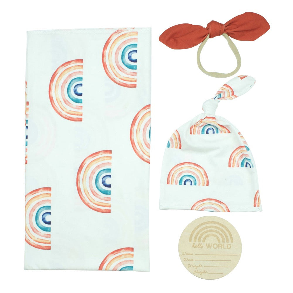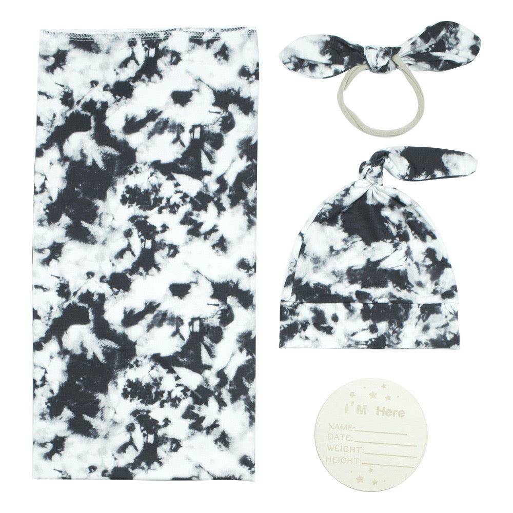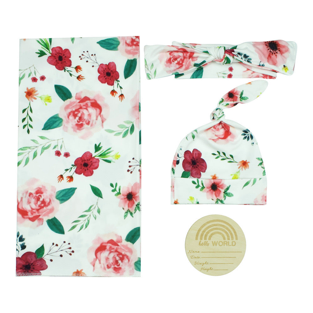 Newborn Wrap Bow Hair Tie Set Baby Flower Cuddle Blanket Baby Wrap