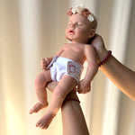 Mayfair baby doll is crafted from liquid silicone, ensuring safety and harmlessness to the body. It's a realistically detailed full silicone baby doll with a solid, weighted body for a lifelike touch.