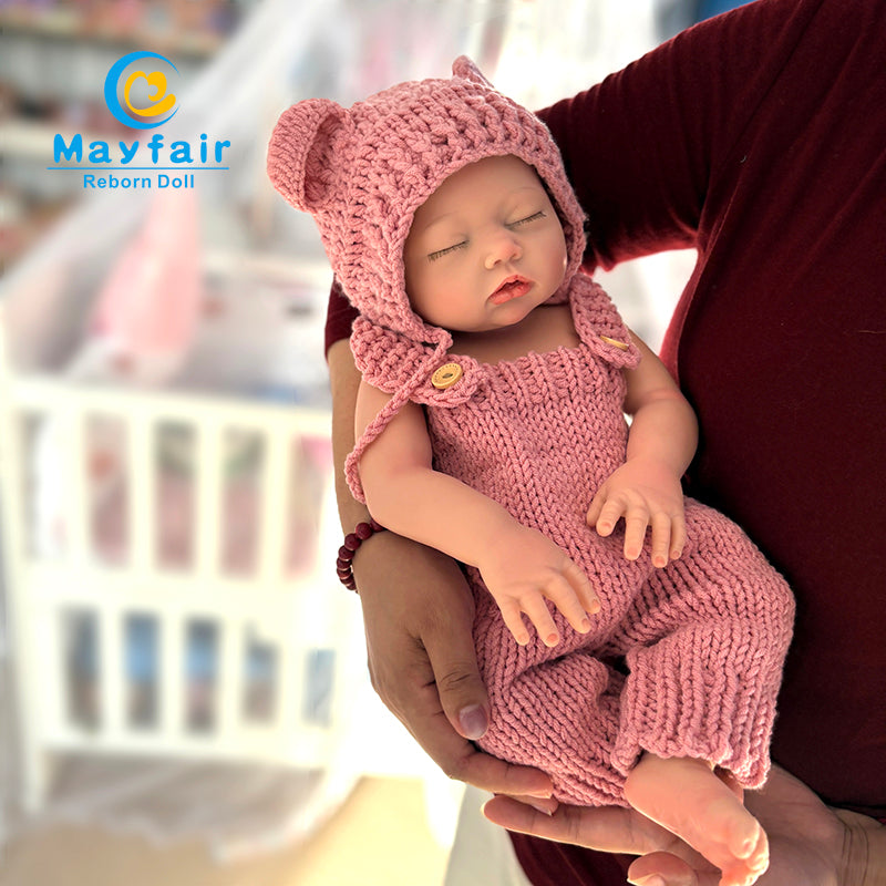 Mayfair baby doll is crafted from liquid silicone, ensuring safety and harmlessness to the body. It's a realistically detailed full silicone baby doll with a solid, weighted body for a lifelike touch.