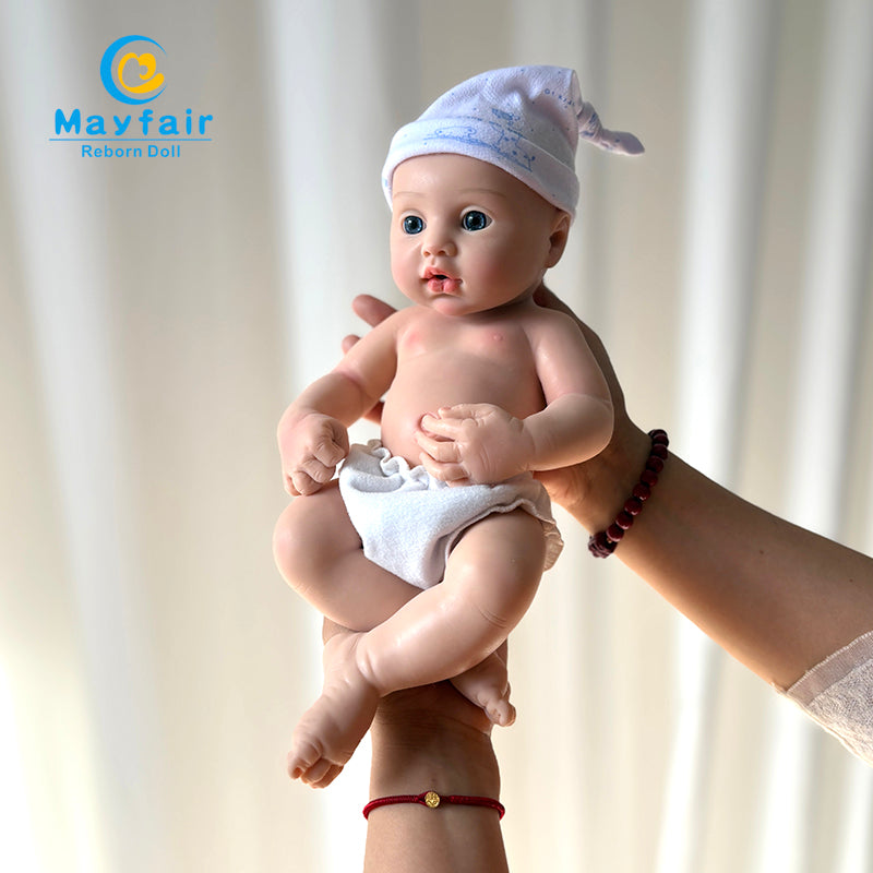 Mayfair baby doll is crafted from liquid silicone, ensuring safety and harmlessness to the body. It's a realistically detailed full silicone baby doll with a solid, weighted body for a lifelike touch.